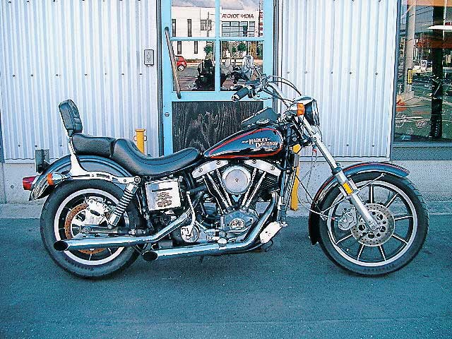 | 一年の転勤が終わり地元へ戻る。最大排気量のバイクに乗ってみたくなり地元に戻りすぐにハーレーの新車を購入。車名FXSローライダー。 | |